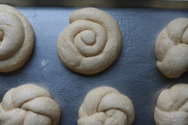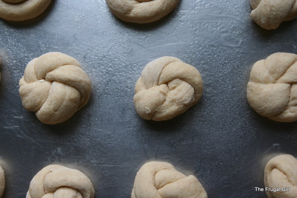 Punch the dough down and divide it into 36 pieces. If you prefer for your rolls to be a little larger, you can cut the dough into 30 pieces. You can shape the dough however you wish, but here are three suggestions.