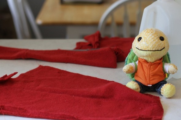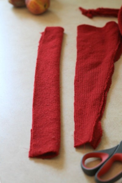 So, she brought me an old sweater, and I managed to cut a scarf-length section from the arm.