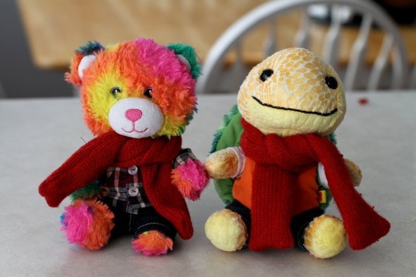 Once Nelson had a scarf, Zoe’s bear Barney suddenly had a hankering for one too. 😉