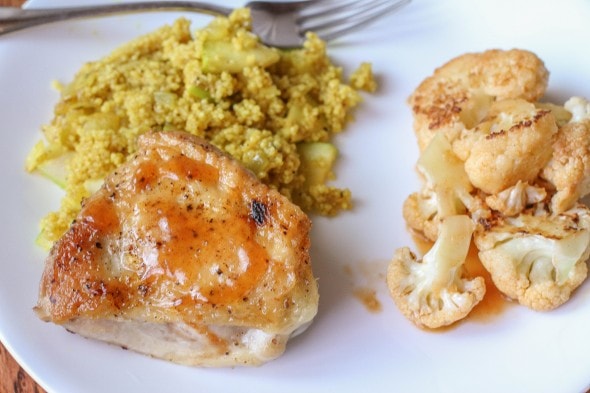 This was the day (mentioned yesterday) that I realllllly didn’t want to cook dinner. I made curried chicken breasts with curried couscous, and stir-fried cauliflower.