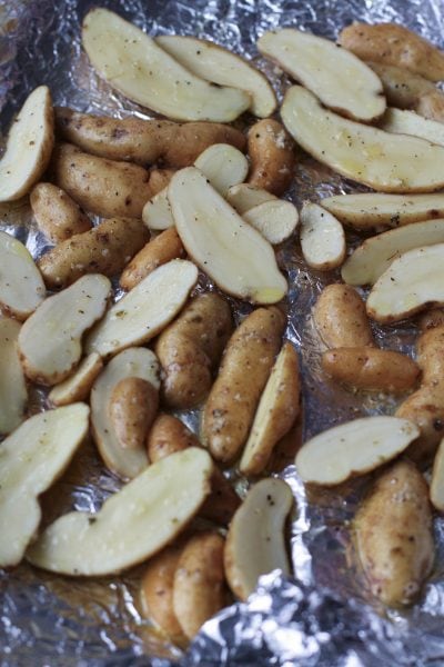 I spatchcocked and salted a an organic Aldi chicken, which I roasted along with some fingerling potatoes from my produce box.
