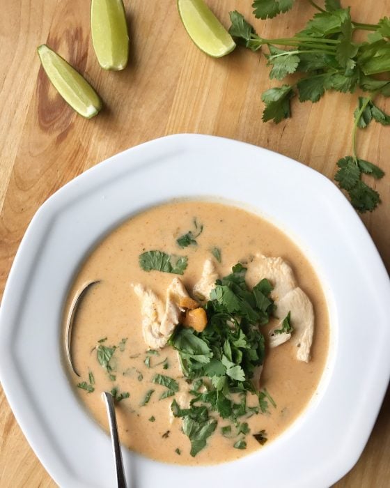 I made a pot of Thai chicken soup, which we ate with toast and some fresh produce.