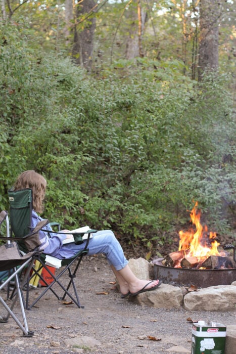 We had hamburgers and hot dogs, cooked over the campfire, plus green beans (not cooked over the fire) and watermelon (also not cooked on the fire. Ha.)