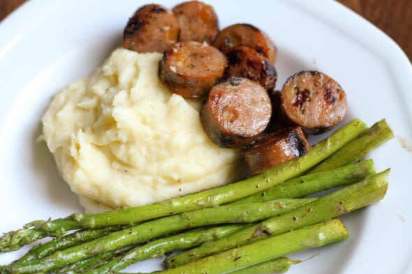 I sauteed some chicken sausages, which we ate with mashed potatoes and sauteed asparagus.