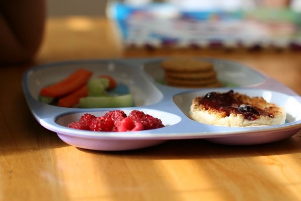 I made the executive decision to bump Chicken Tacos to next week’s menu, and instead I fed my children miscellaneous stuff from the fridge (leftover dip, crackers, raspberries, cucumbers, carrots, and English Muffins spread with blueberry jam.).
