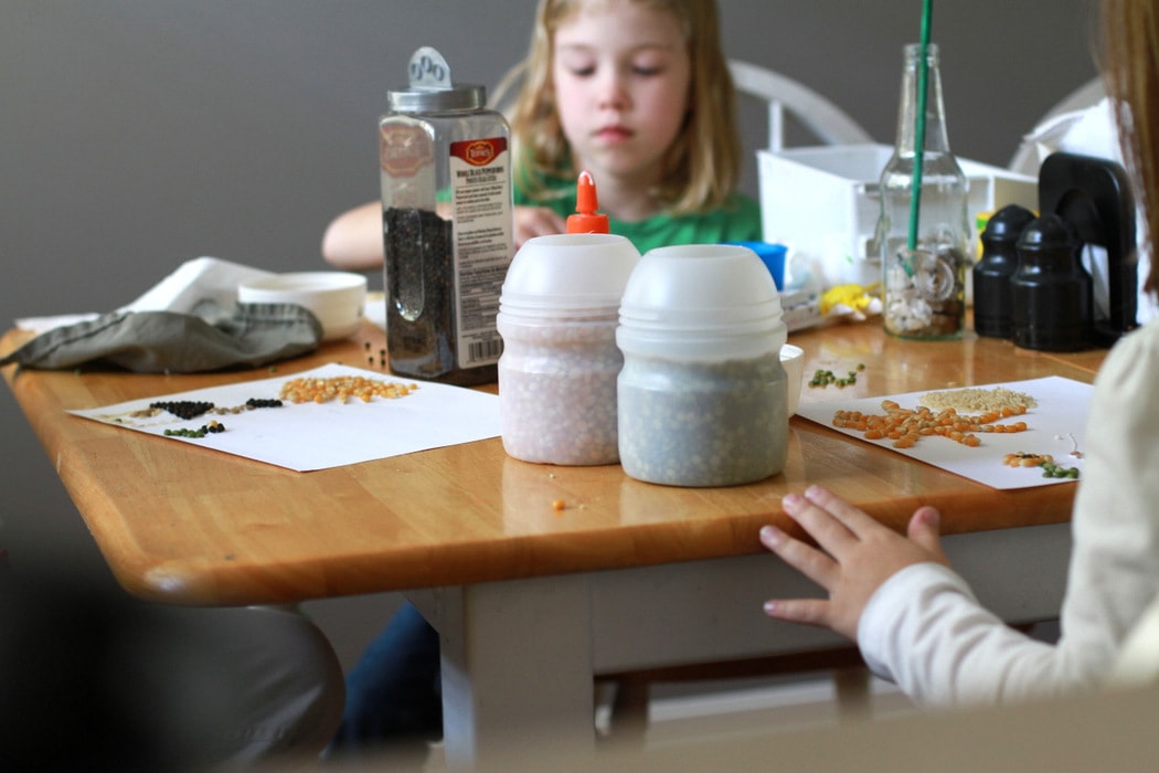 My mom used to let my siblings and me make these when we were kids, but this was the first time I’d shown my kids how. They were pretty skeptical at first (“What are we going to make with peas, Mommy???”), but they all had a delightful time.