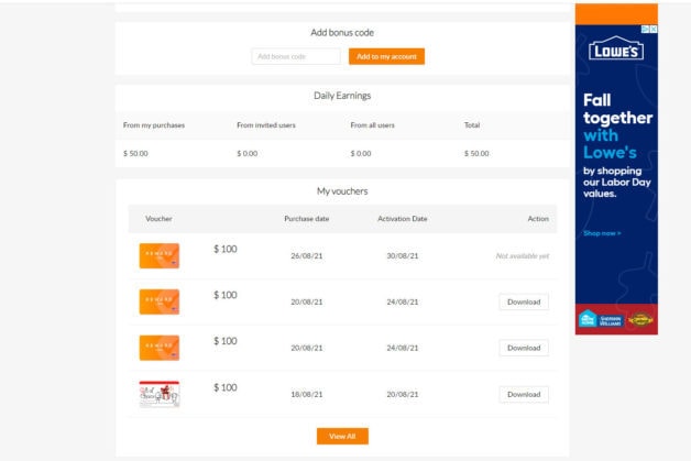 If you open an account through this link, (and any links in this post), you will get a $10 welcome bonus, plus a free three-month subscription to their premium plan. The main benefit of the premium plan is that the cards you buy are activated immediately; you don’t have to wait the usual two days.