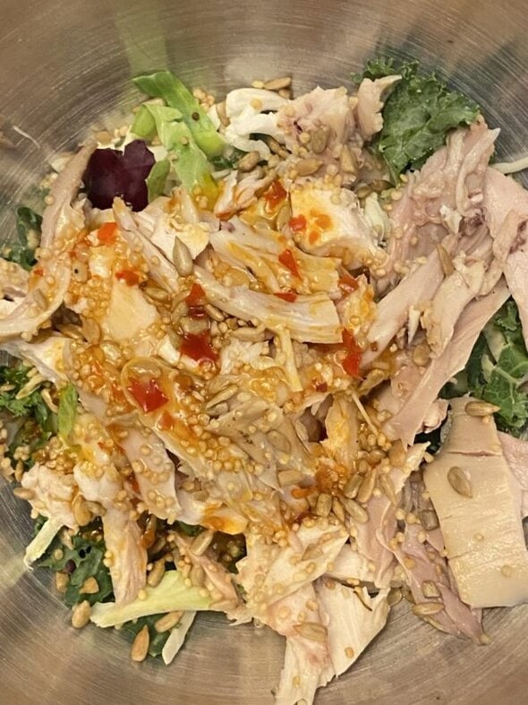 I picked up a rotisserie chicken on the way home and Zoe and I ate that in a green salad.