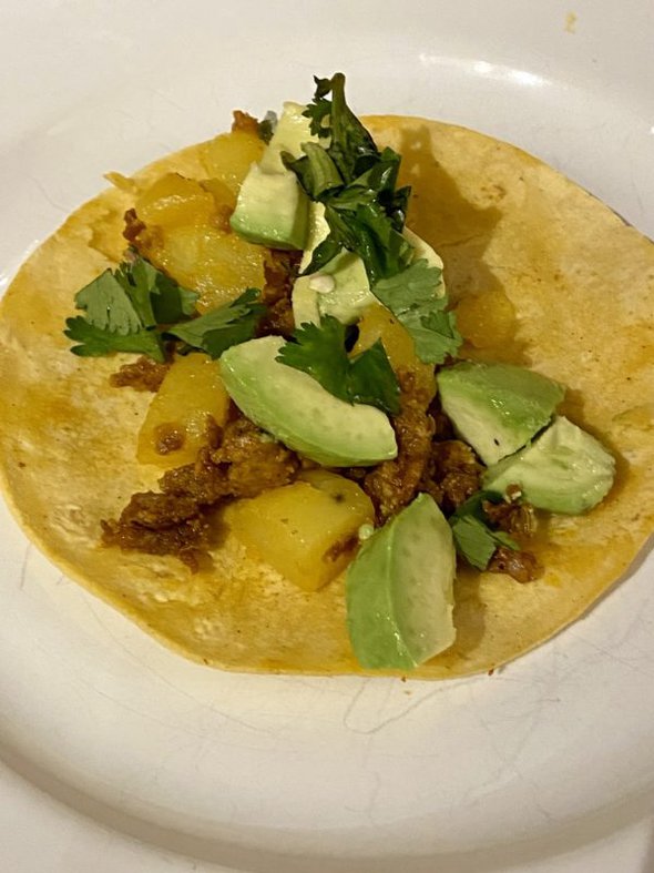 I made some potato and chorizo tacos with avocado (and sour cream, which was unpictured!)