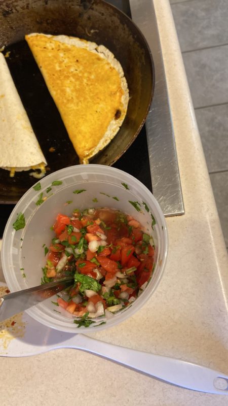 I had some chorizo in the freezer, so I thawed that, browned it, and used it to make quesadillas.