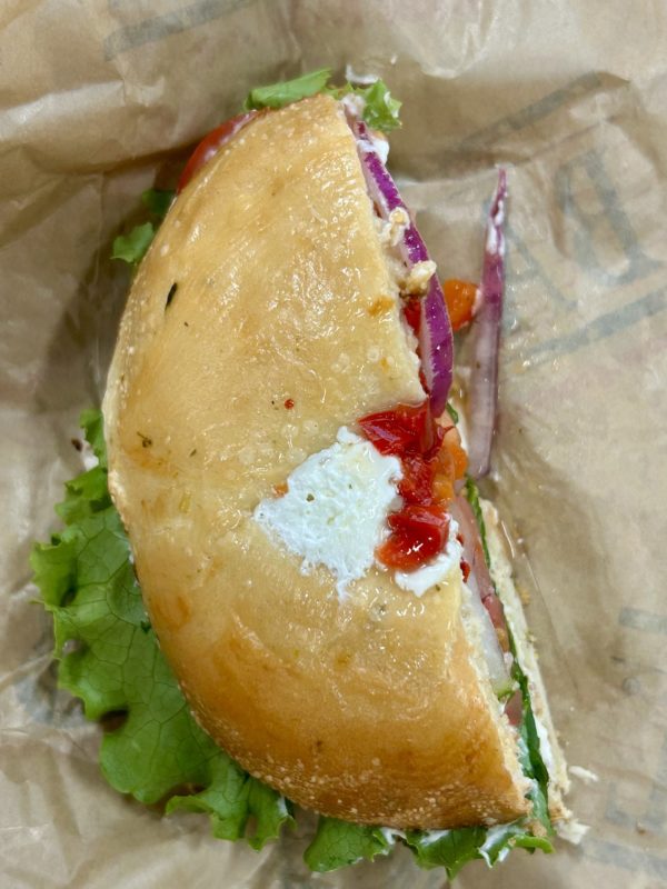 I just had a veggie bagel at the airport on my way home. Overpriced, of course, but at least there was a little fresh produce in there!