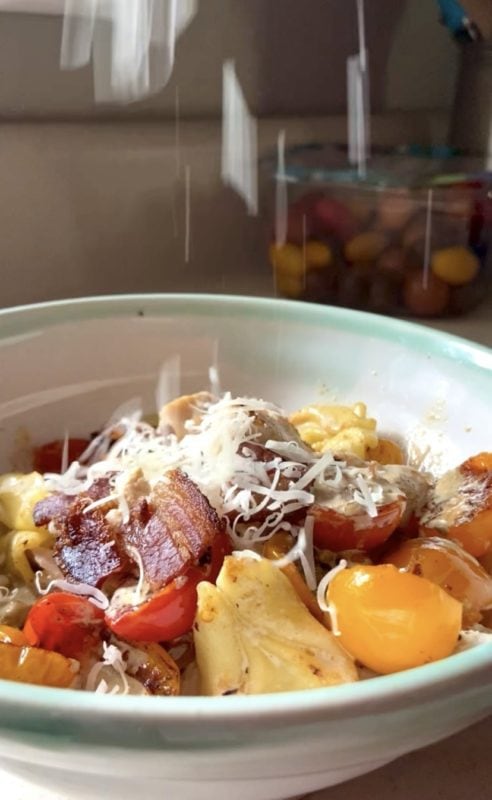 Zoe was at a gathering of friends, and this is the night I made the tortellini/tomato/bacon pasta.