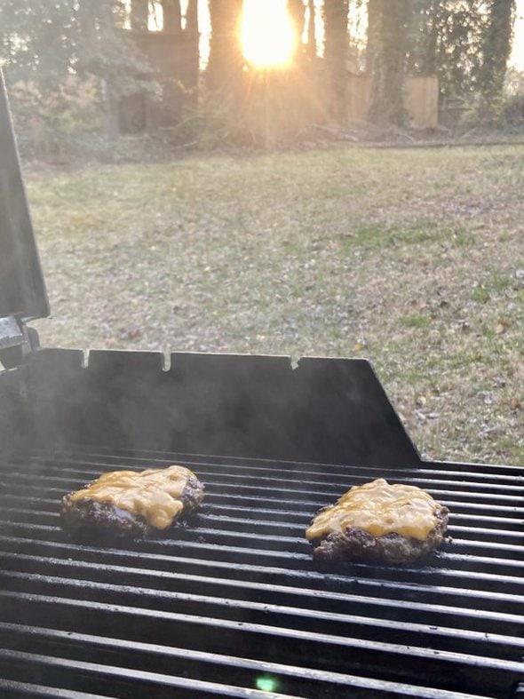I grilled some burgers, made some potato wedges to use up a bag of red potatoes*, and cut up some fruit.