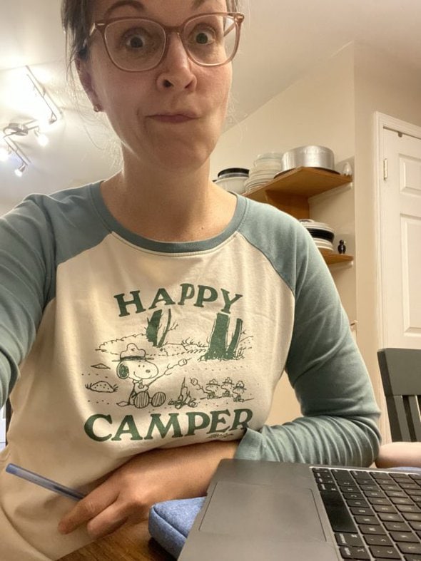 As I was writing this post, I looked down at my shirt and thought, “Hmm, I need a shirt that says, ‘Tired Camper’ right now.” Heh.
