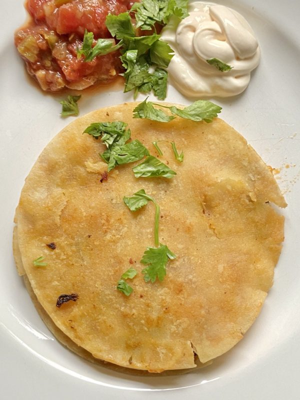 And after I got home, I made bacon and cheese quesadillas, which we ate with salsa and sour cream, with some cut-up fruit on the side.