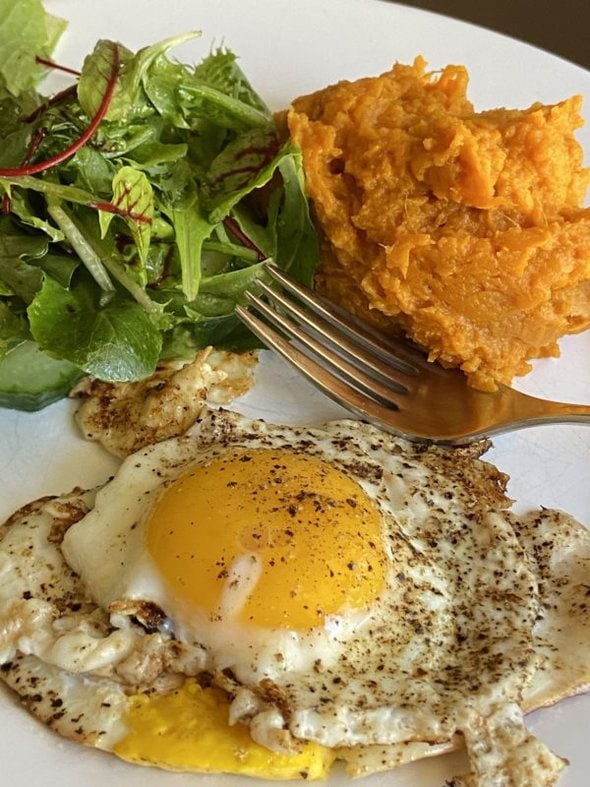 My usual when I’m on my own: an egg-based plate. 🙂