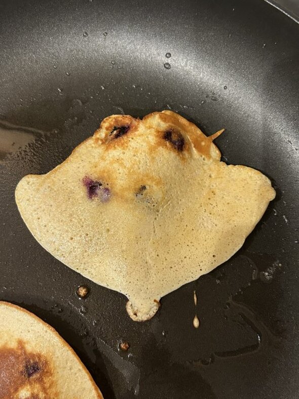 I made some oatmeal cottage cheese pancakes after work, and I accidentally made one that looks like a manta ray.