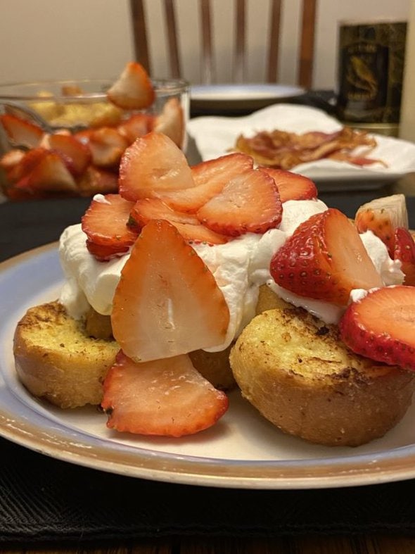 I made French toast and bacon because apparently I am in a breakfast-for-dinner mood this week. And NO ONE CAN STOP ME.