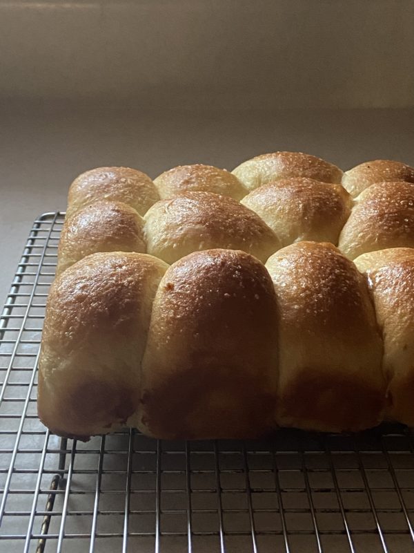 I made some of my honey-glazed rolls, and we got some takeout fried chicken, just like we did last year!