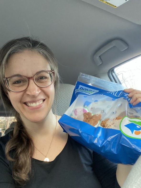 Of course, I maximized it by using a “buy one, get one for $5” entree deal, and I also snagged a discounted cookie for Zoe and me to share. 🙂