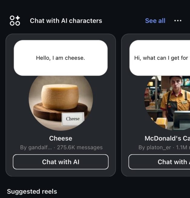 Since this post is about food…look at this weird ad that came up on Instagram for me this week! Apparently, you can chat with an AI cheese character?