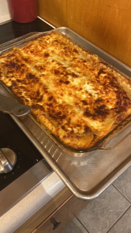 I made lasagna, French bread, and sautéed broccoli.