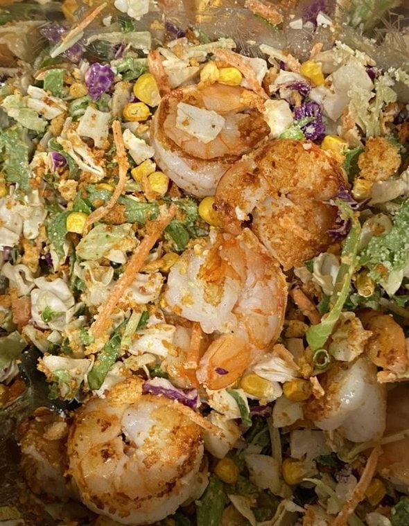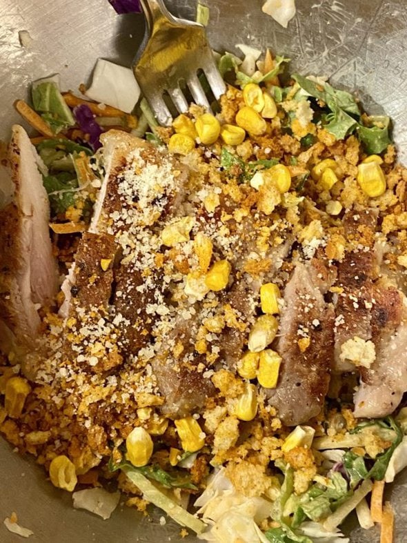 I used the rest of the Mexican street corn salad mix with sauteed chicken thighs. I think it’s slightly better with the shrimp, personally.