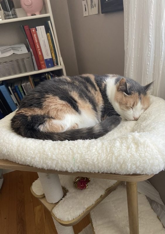 I hope this continues…she has a comfier place to sleep, and I can type without a cat in the way. 😉