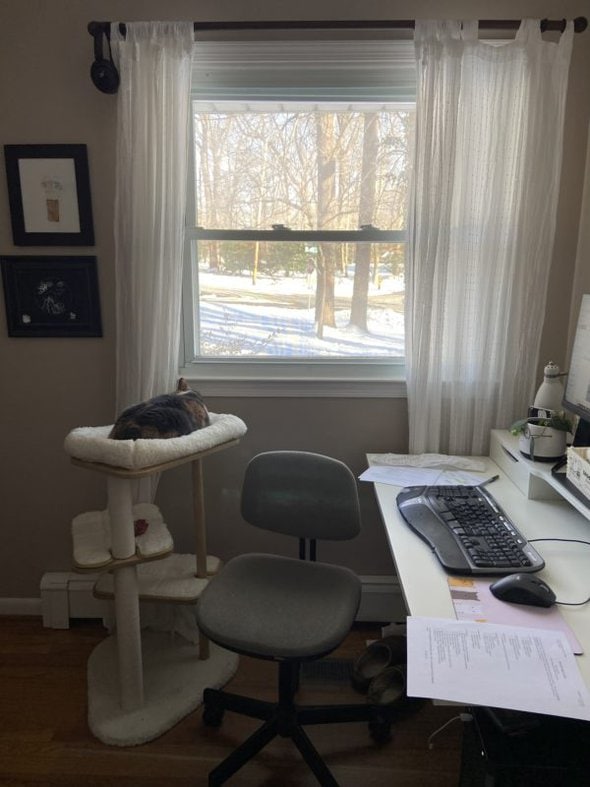 I moved her new cat tree into my office, and so far, it is working beautifully to keep her off my desk!