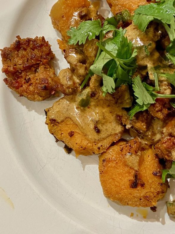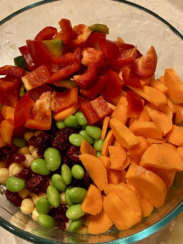 Zoe was at work, so I made myself a “winging it” one-person dish with sweet potatoes, sausage, cilantro, and jalapenos.