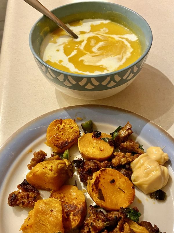 Something similar to Saturday, but with some butternut squash soup.