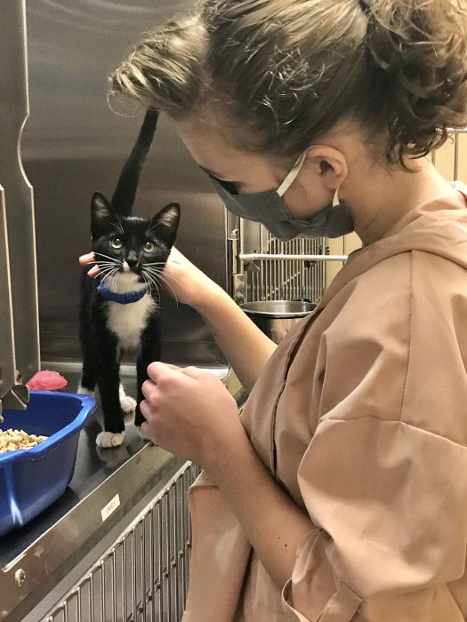 First, would you like to see a few kitten pictures? Sonia came with me to do the cat shift this week, and there was this teeny tuxedo kitten that was unbearably cute.