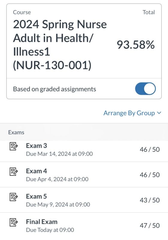 Congratulations on your grades in Nursing school it is a great accomplishment! You will be an amazing nurse!