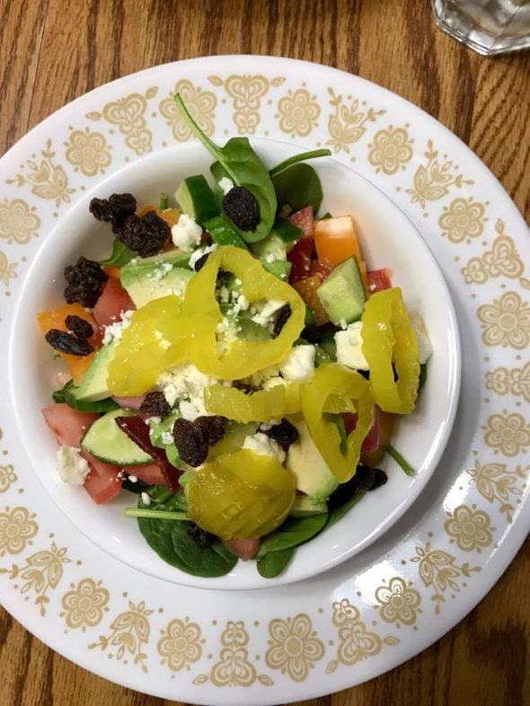 We had a green salad on the side (and a fruit salad, which you can see in the background of the picture above.)