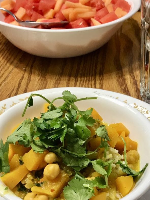 My mom made a chickpea/butternut squash curry, which we ate over rice.