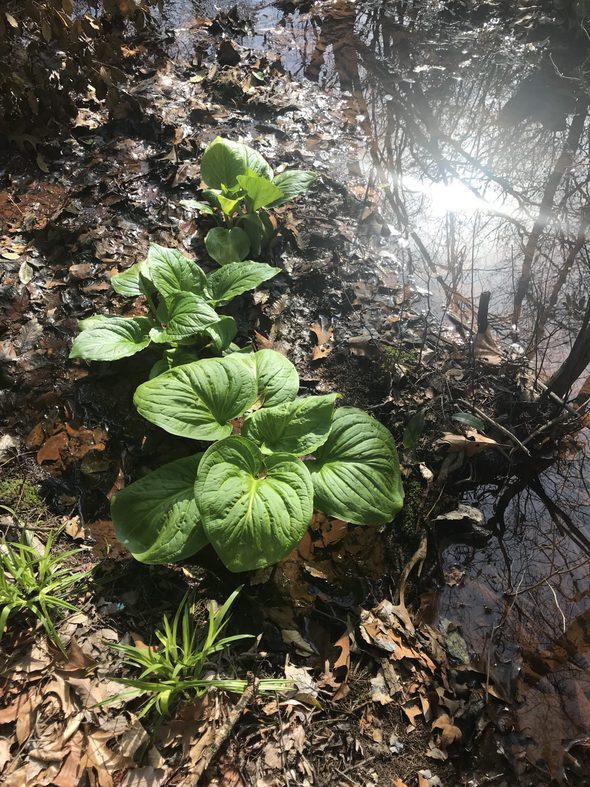 Skunk cabbage is not really edible, but it has been fun to see it popping up in the marshy areas of the woods where I walk.