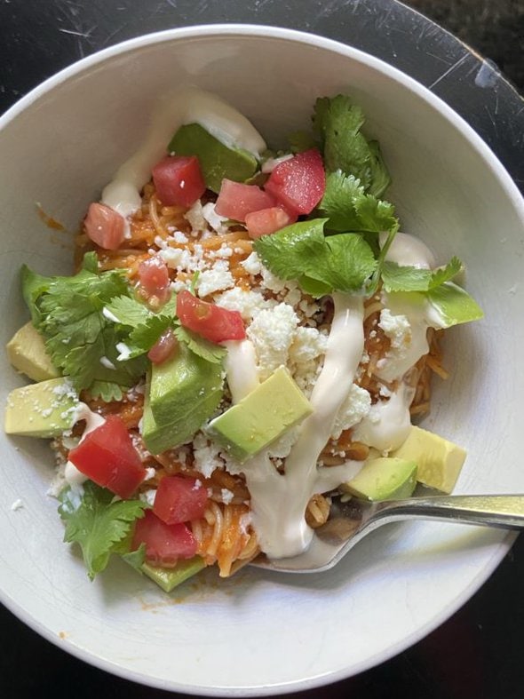 I had leftover sopa seca de fideos, and the girls had mac and cheese.