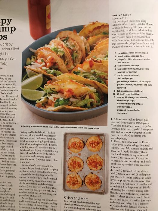 I tried a new recipe for shrimp tacos from my latest Cook’s Country magazine. Super yummy!
