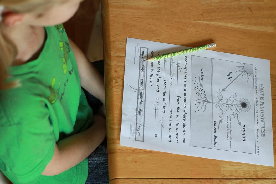 Education.com offers thousands of free printable worksheets which cover all the basic subjects, like English, Math, Science, Social Studies, and so on. Sonia hasn’t finished up any of her books yet, but she wanted to try out these fun new worksheets, so I selected one about photosynthesis for her.
