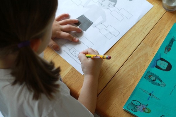My girls like to color and decorate their schoolbook pages anyway, so they don’t mind starting with a plain canvas.