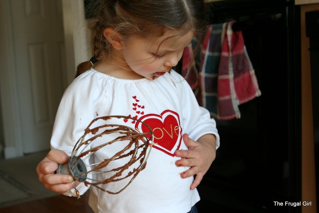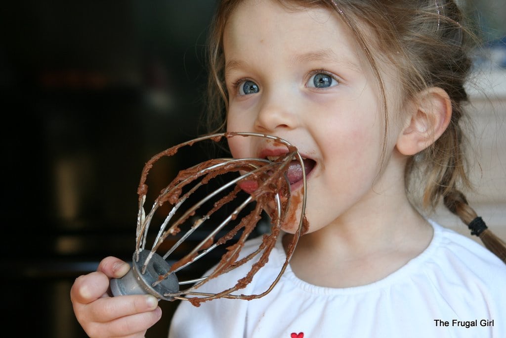 That afternoon, we baked her birthday cake and I frosted it. Zoe licked the frosting beater…