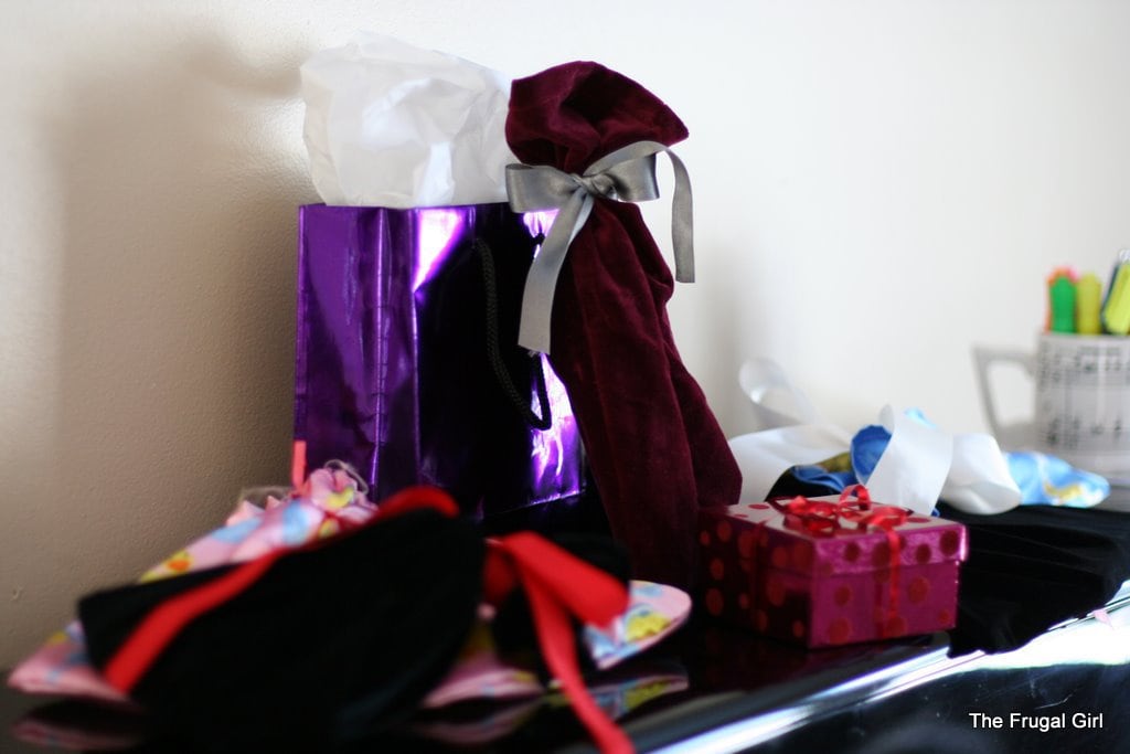 When her dad got home from work, it was time to open presents (you may recognize some of these reusable gift bags).