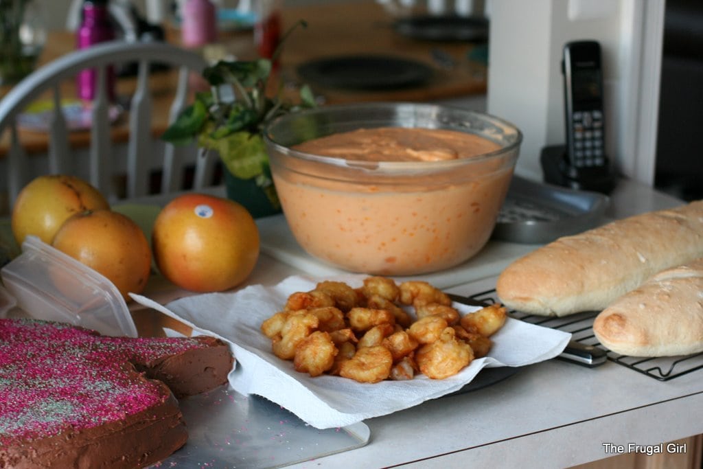 For dinner, we had french bread, fried shrimp, and an enormous bowl of jello (we don’t worry much at all about nutrition on birthdays).